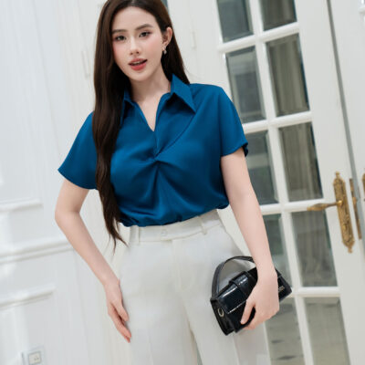 Đánh giá 25SA003- Áo cộc tay cổ đức thân kiểu