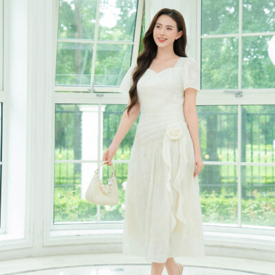 25SD013 – Đầm ren xếp ly đính hoa eo