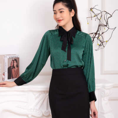 CA22139-SM dài tay phối cổ tay nơ cổ