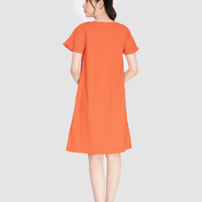 Đầm cổ tròn. Thiết kế dáng suông. xếp vai trước tạo điểm nhấn.