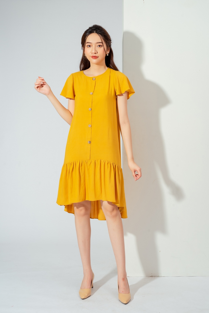 Chân váy dáng Midi, tùng xòe tự nhiên nhờ những đường xếp nếp dọc từ đai xuống. Đai bản lớn được phối cùng khuy. Chất liệu chính là Tuysi trơn, mịn, đứng dáng.